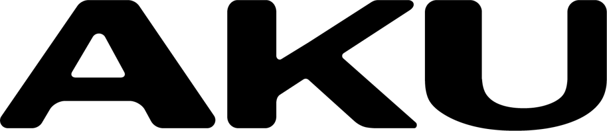 Nowe logo AKU w detalach – minimalistyczna typografia, odświeżony symbol i zastosowanie znaku na obuwiu trekkingowym oraz materiałach promocyjnych marki.