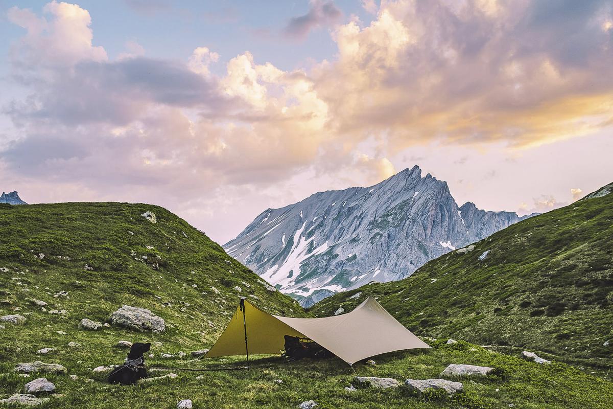 Gdy nie ma drzew, tarp hamakowy rozstawiony na kijkach trekkingowych staje się samodzielnym schronieniem. Zdjęcie Maciej Walaszczyk