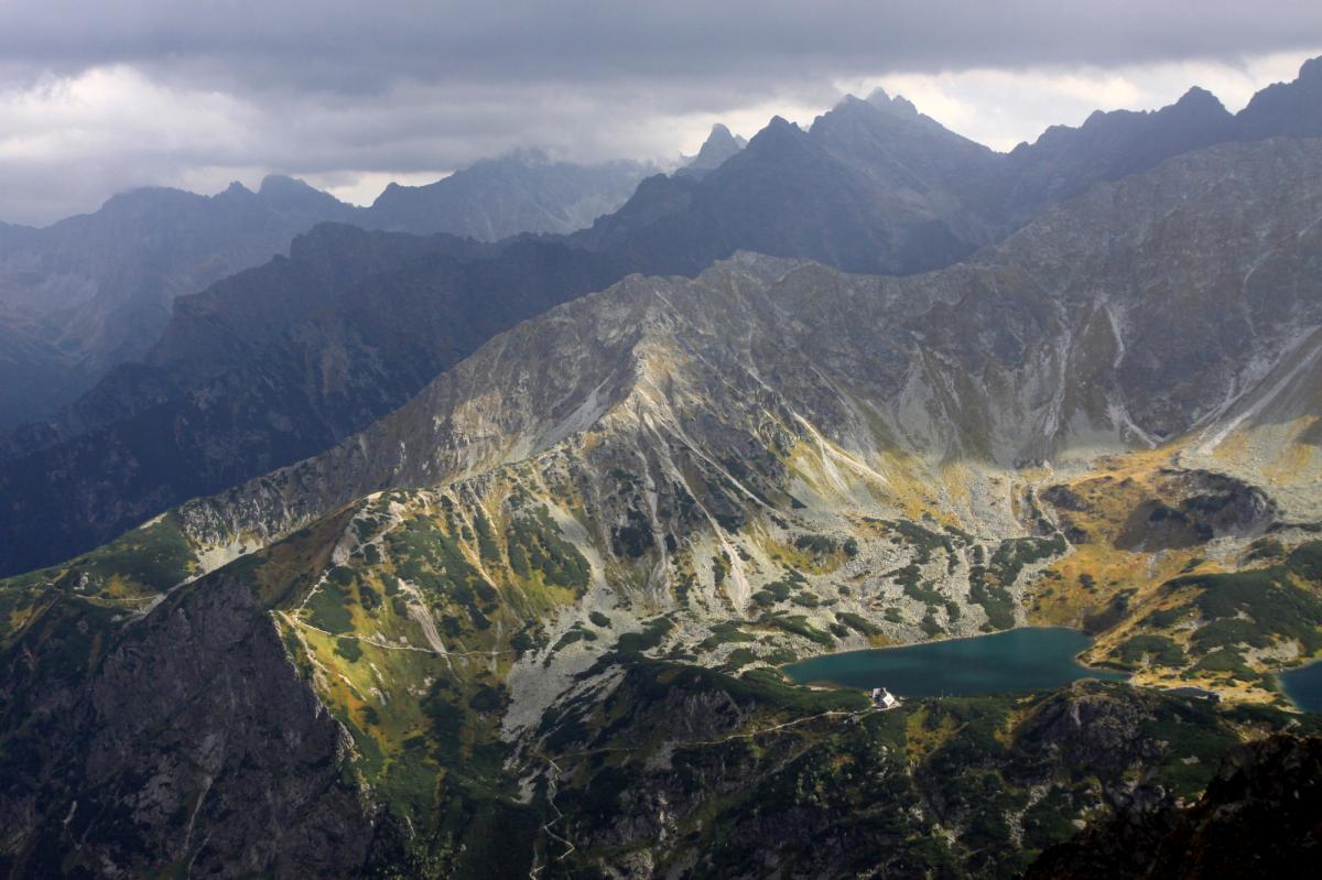 Wyżej niedostępne granie skalne i zimny granit, a niżej zieleń i niemal sielankowe jeziorka – to kwintesencja wysokogórskiego krajobrazu Tatr Wysokich. Zdjęcie Jan Niedźwiecki