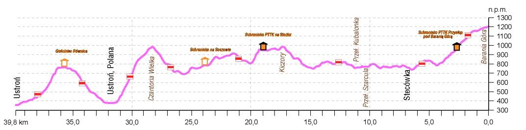 Profil terenu fragmentu GSB z Przysłopu pod Baranią Górą do Ustronia