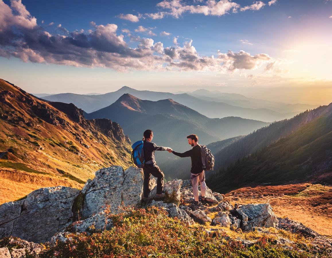 Partnerstwo w górach. Wygenerowano za pomocą narzędzia Adobe Firefly
