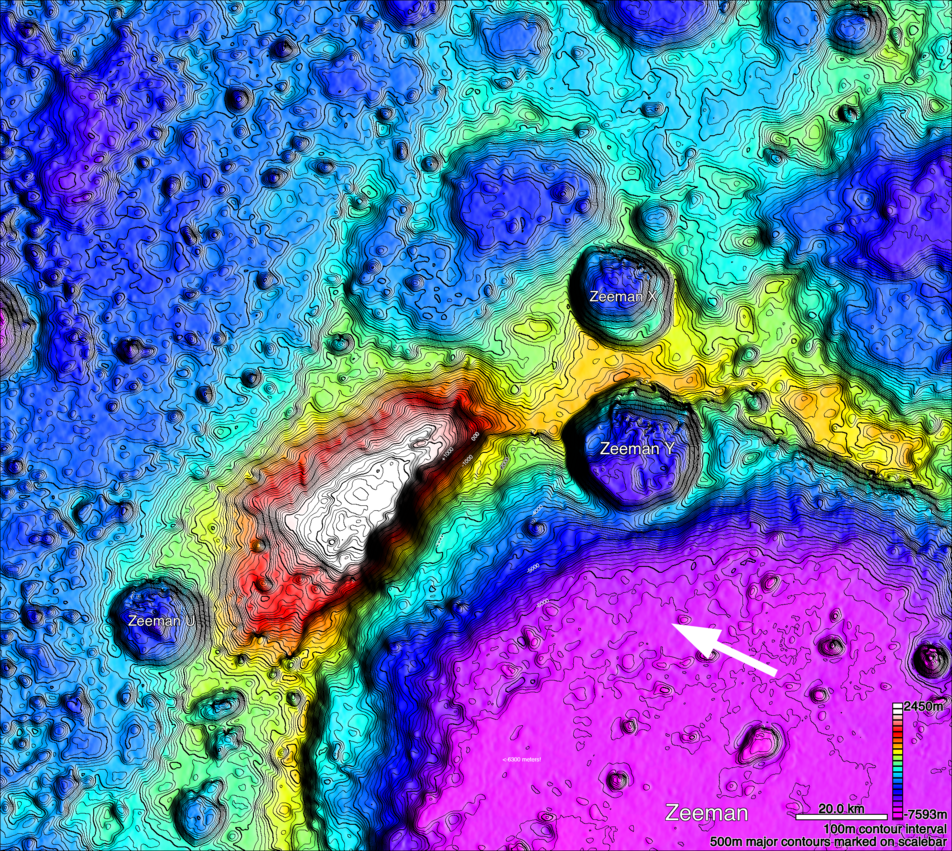 Krater Zeeman na Księżycu. Obraz: http://lroc.sese.asu.edu/ckeditor_assets/pictures/564/content_zeeman_shaded_relief.png