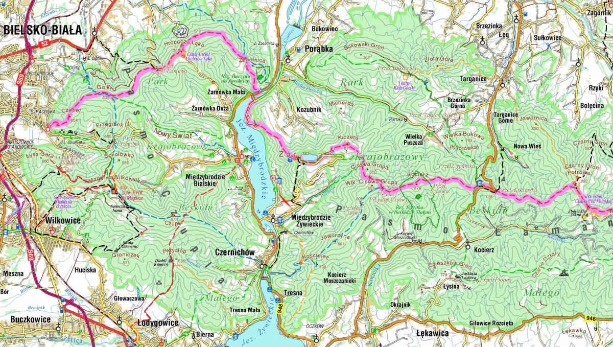 Mapa Małego Szlaku Beskidzkiego 1/4