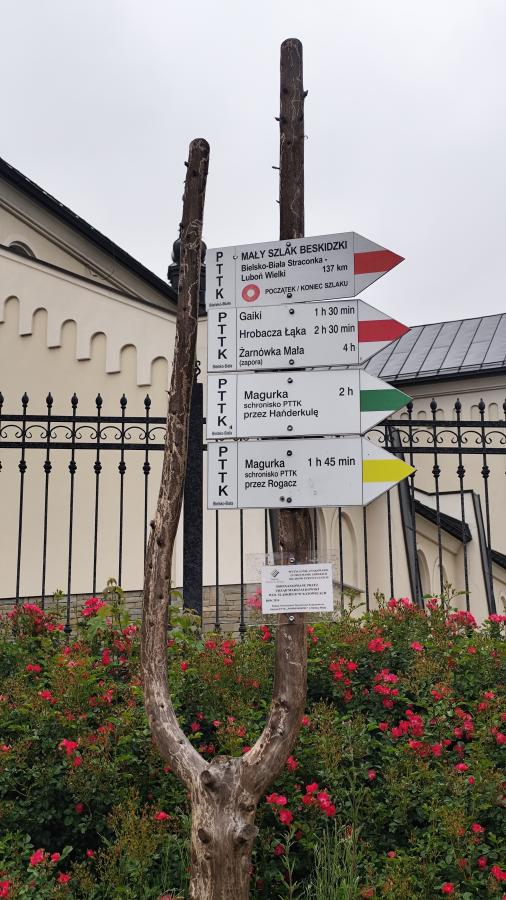 Poczatek albo koniec Małego Szlaku Beskidzkiego w Bielsku-Bialej Straconce