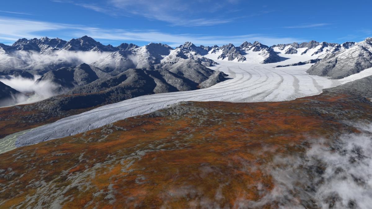 Rekonstrukcja Lodowca Białki ok. 20 tys. lat temu. Zdjęcie Jerzy Zasadni, Andrzej Świąder / AGH w Krakowie