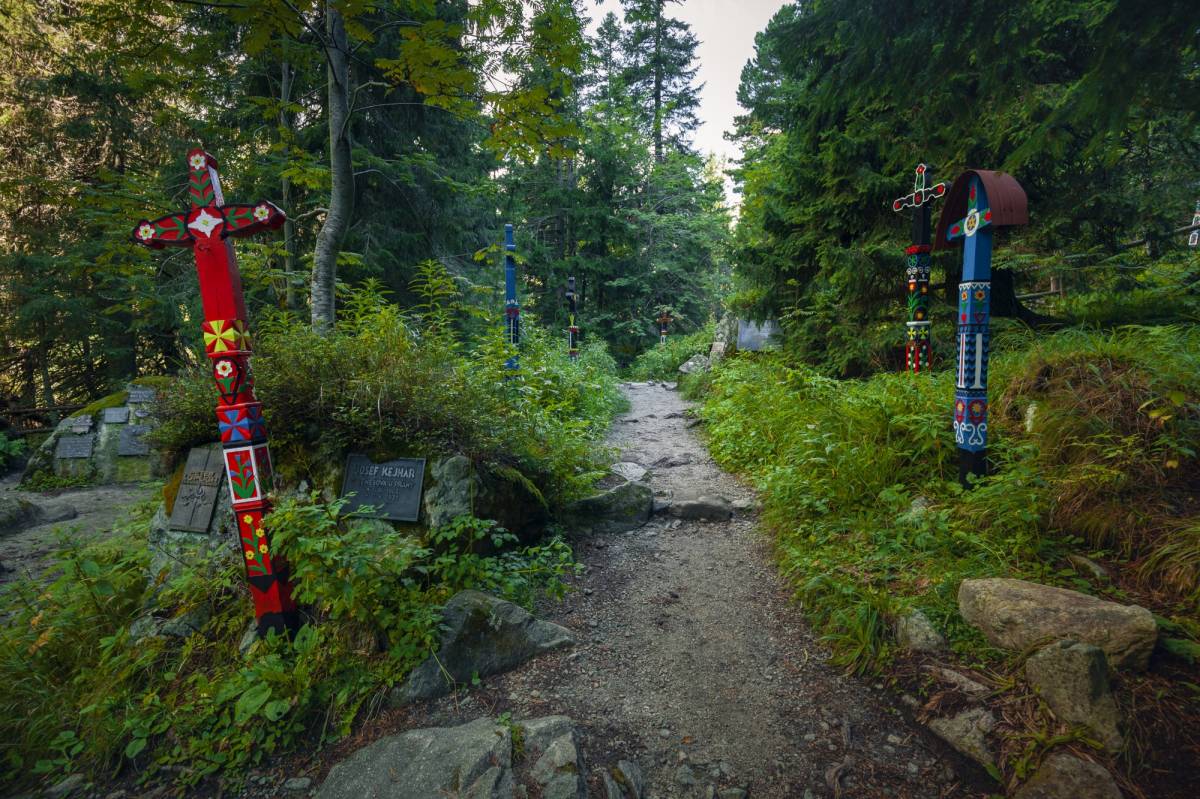 Ścieżkami cmentarza idą też wspinacze, których celem są ściany potężnej Osterwy. Zdjęcie Karol Nienartowicz