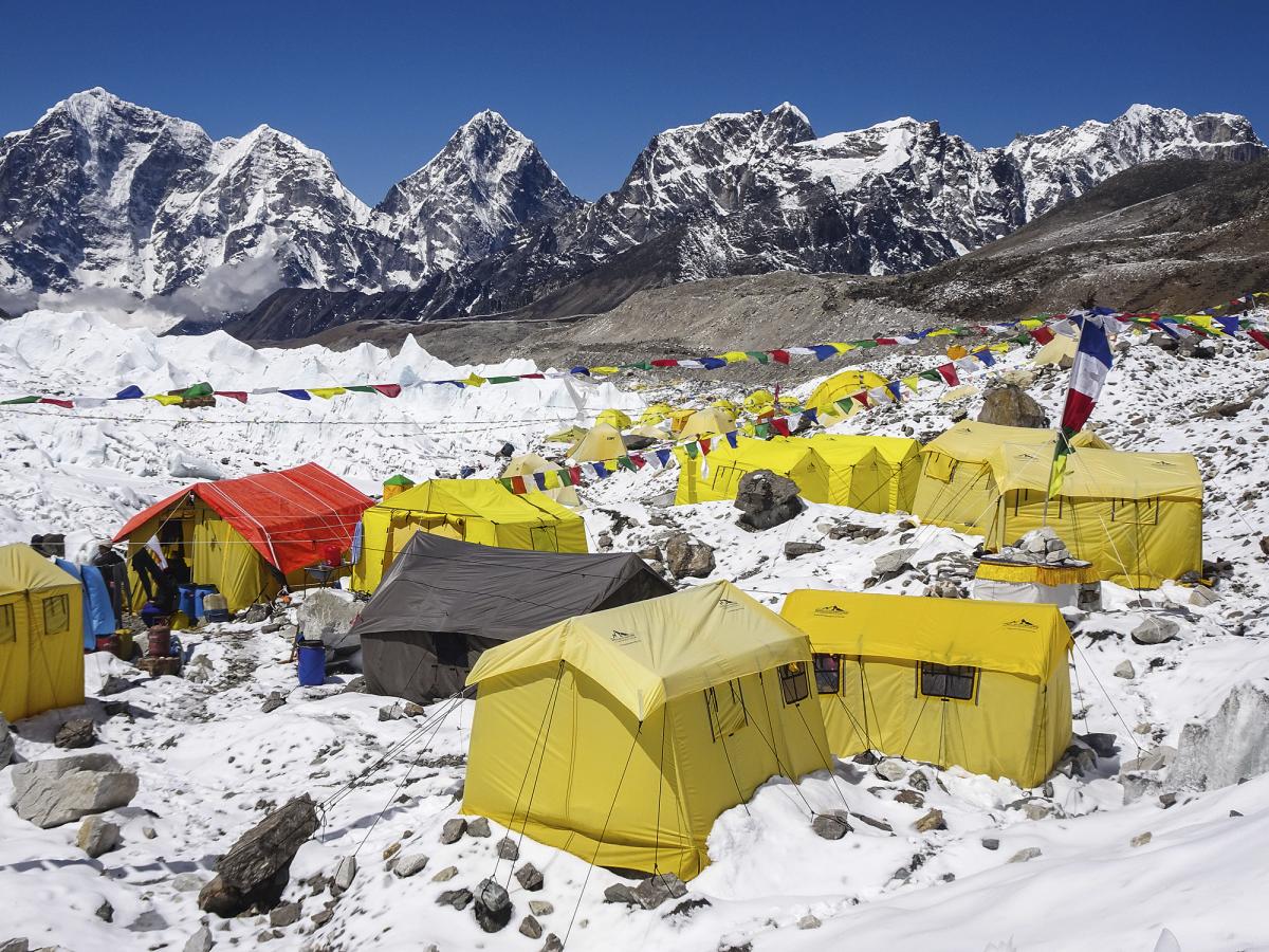 Uczestnicy zimowej wyprawy na Everest w 1980 roku. W pierwszym rzędzie, drugi od lewej siedzi kierownik Andrzej Zawada. Zdjęcie Bogdan Jankowski