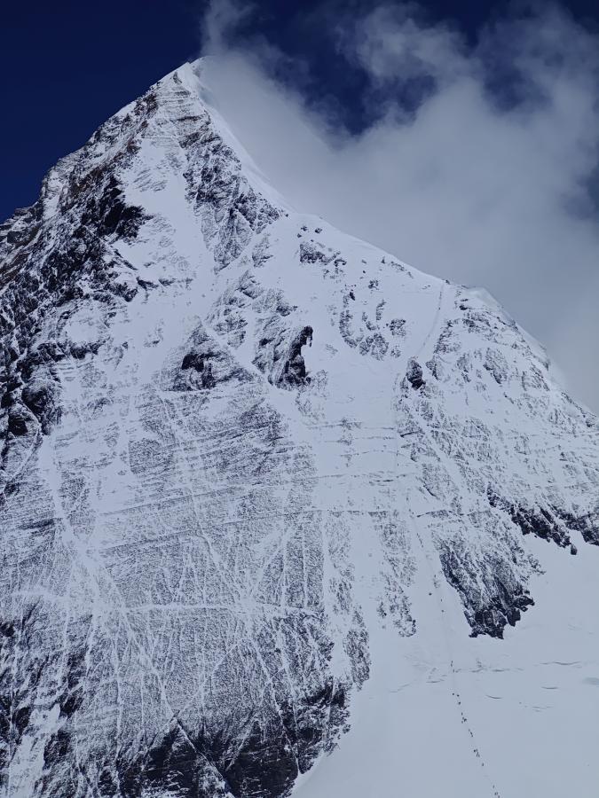 Lhotse i przełęcz Południowa widziana w czasie podejścia na Everest
