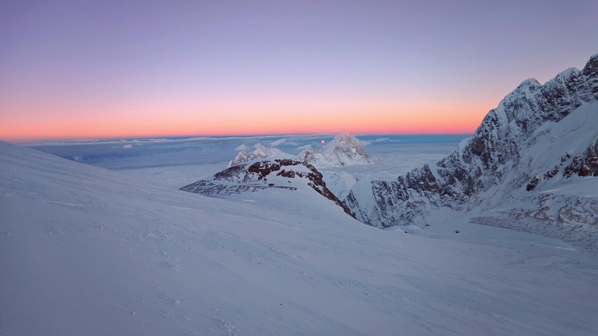 Makalu z dziwnym księżycem poniżej horyzontu.