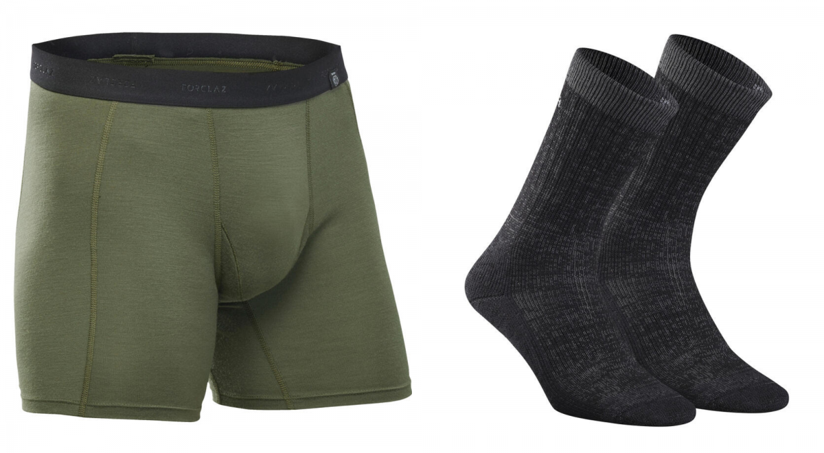 Bokserki trekkingowe męskie Forclaz MT500 merino / Skarpety turystyczne Quechua SH100 Ultra Warm Mid