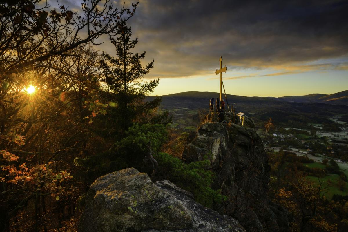 Krzyżna Góra to najwyższy wierzchołek Gór Sokolich. Swoją nazwę zawdzięcza siedmiometrowemu krzyżowi umieszczonemu na jej szczycie. Zdjęcie Rafał Kotylak