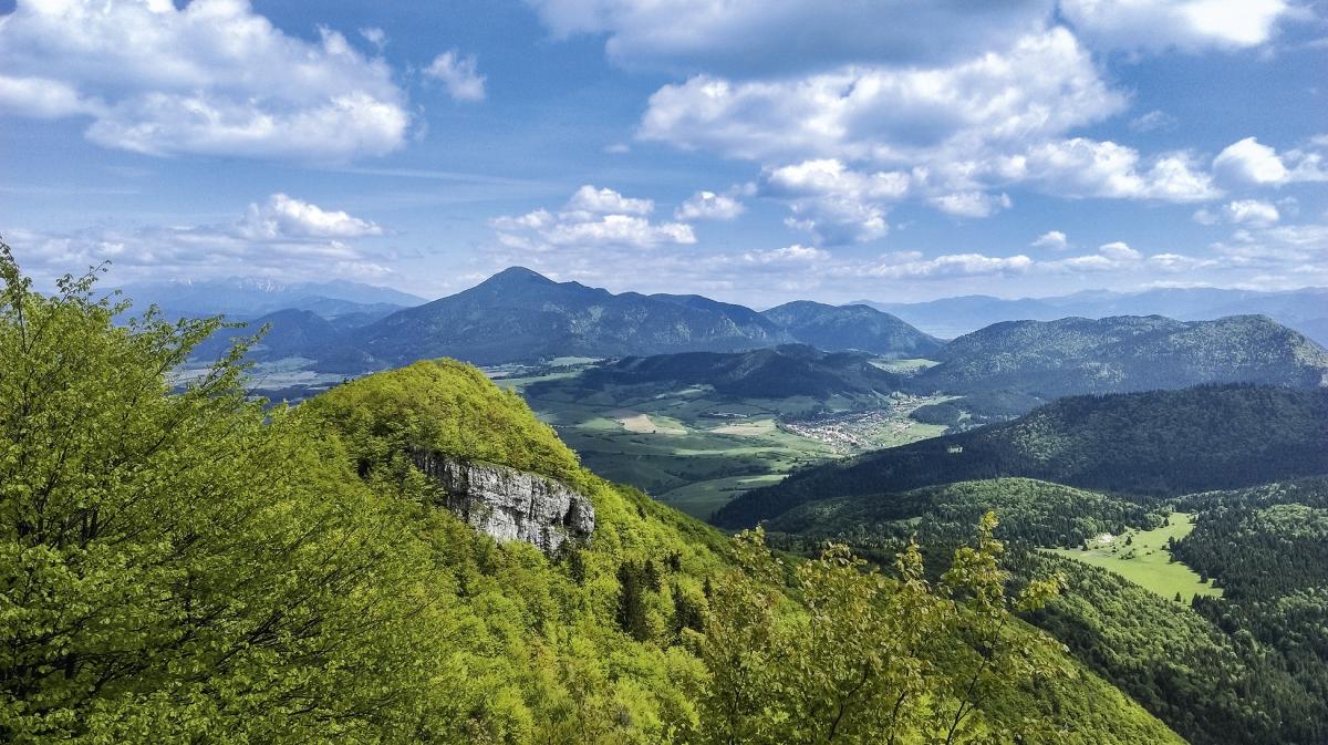 Widok z Ostrego ponad masywem Szipa na Małą Fatrę. Główny masyw po lewej, w centrum Stoh, a po prawej charakterystyczny Wielki Rozsypaniec, zdjęcie Andrzej Otrębski
