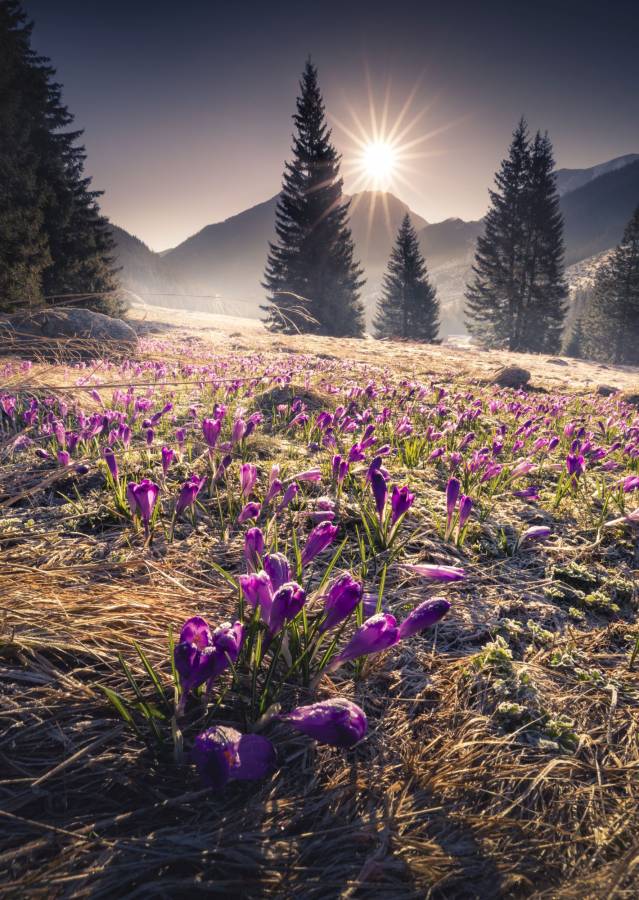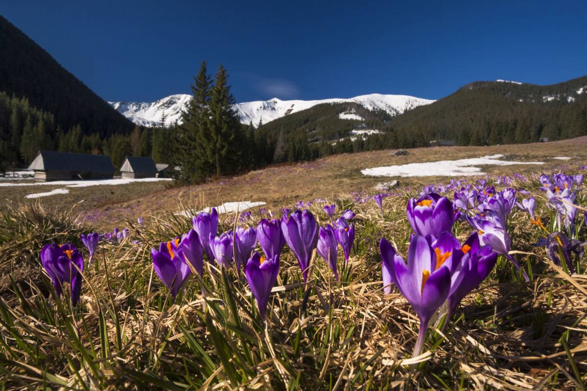 Wiosenne krokusy w Tatrach - Galeria zdjęć ilustrujących piękno krokusów w Tatrach, ich różnorodność, oraz tłumy turystów, które zbierają się każdego roku, by podziwiać te kwiaty. Zdjęcia przedstawiają krokusy na tatrzańskich polanach, sceny z Doliny Chochołowskiej oraz informacje na temat szafranu spiskiego i jego znaczenia dla regionu.