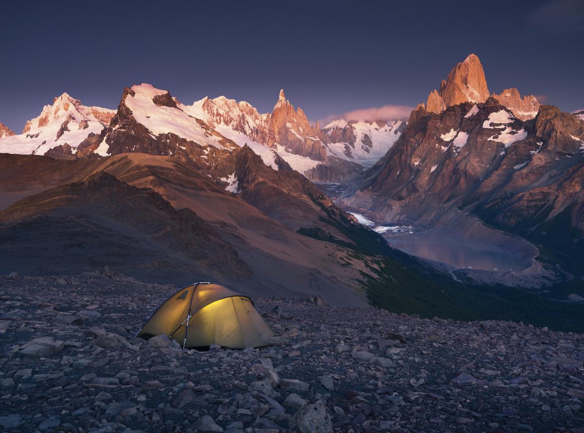 Patagonia, biwak na Pliegue Tumbado przed wschodem słońca. Zdjęcie Karol Nienartowicz
