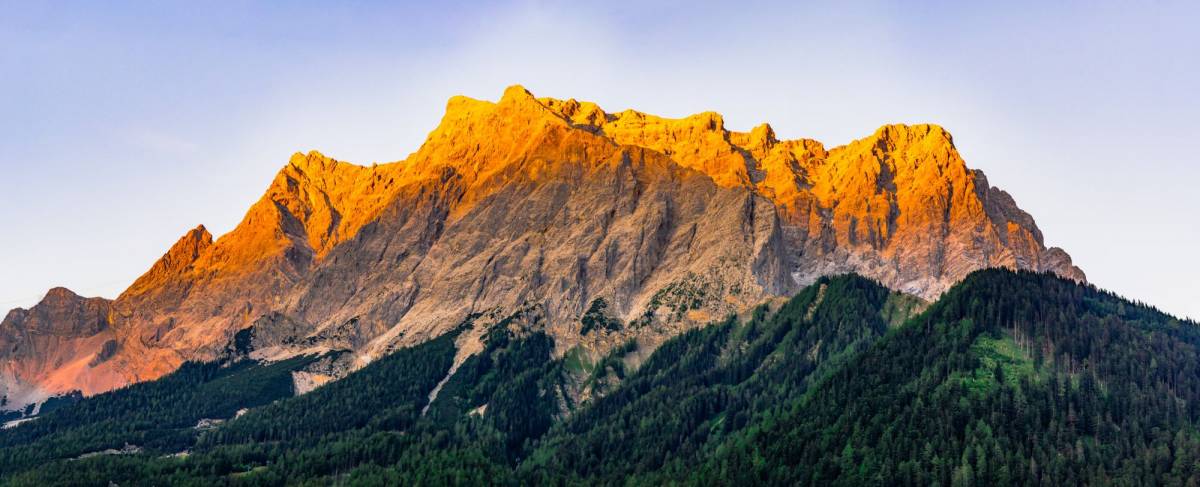 Zugspitze w blasku wschodzącego słońca. Alpy na wyciągnięcie ręki